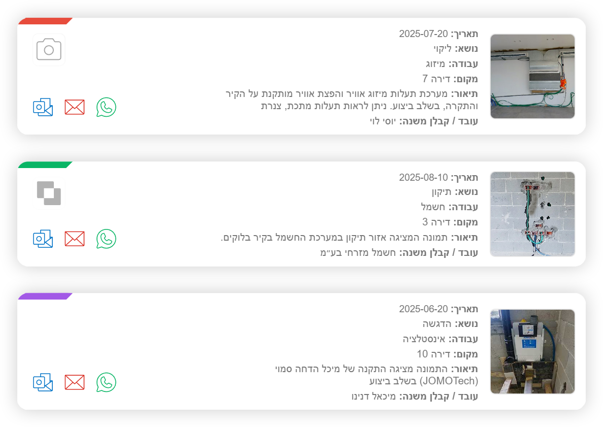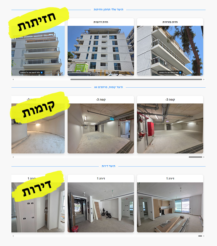 הדוחות מדגישים ומפרטים את מצב העבודה והמרכיבים החיוניים, ומספקים תמונה ברורה של ההתקדמות בכל דירה, קומה או חזית